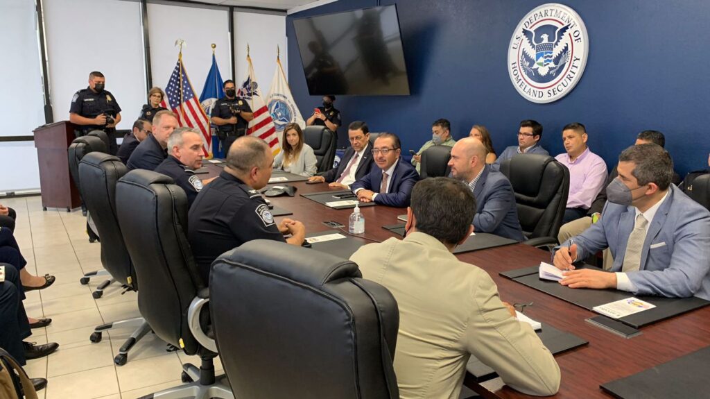 Sobre esta reunión las secretarías de Seguridad y Protección Ciudadana (SSPC) y de Relaciones Exteriores detallaron parte de los dos encuentros sostenidos en las ciudades de San Antonio y Laredo, Texas, en donde funcionarios de esas dependencias y de la Defensa Nacional (Sedena), de la Secretaría de Marina Armada de México (Semar) de la Guardia Nacional (GN), y la Unidad de Inteligencia Financiera (UIF) de la Secretaría de Hacienda y Crédito Público (SHCP) dialogaron con funcionarios de la CBP estadunidense y de otras oficinas de seguridad de los Estados Unidos.