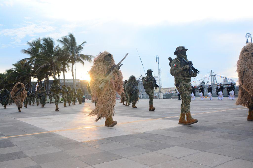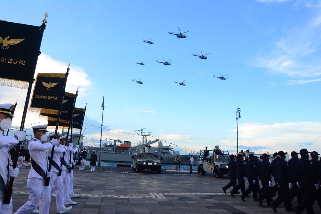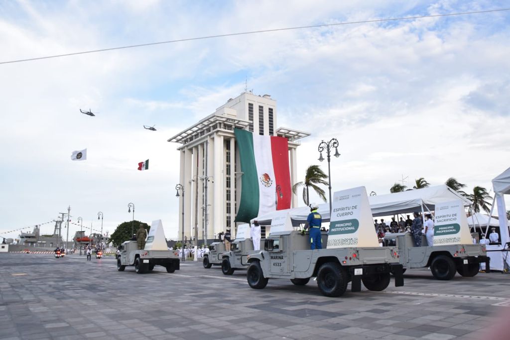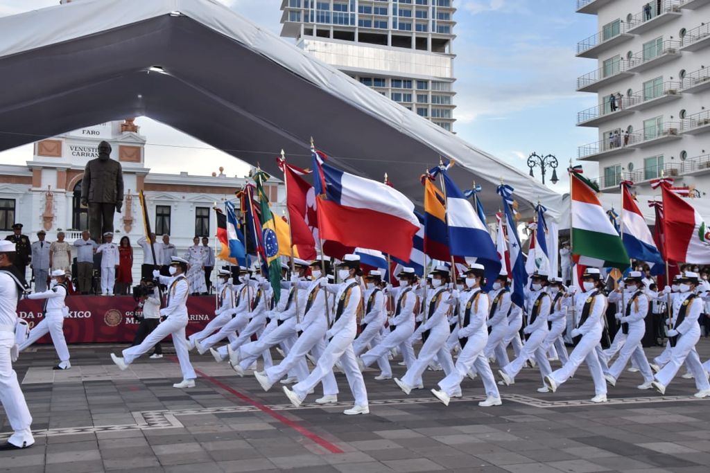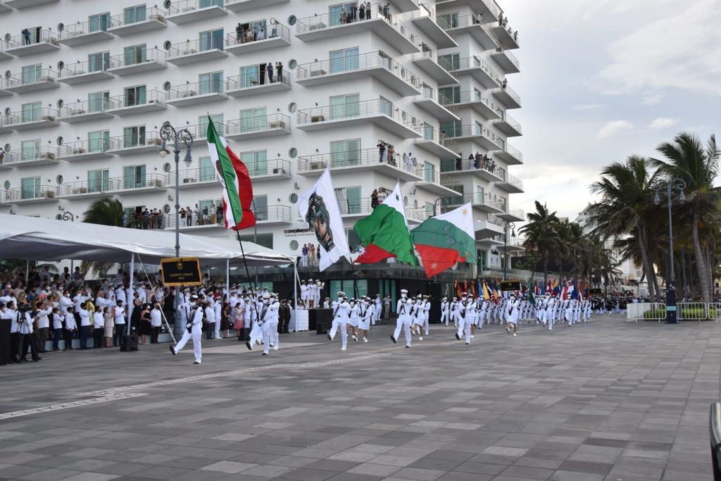 – Desfile del contingente naval, que dio inicio la tarde de este 4 de octubre en la Macroplaza, continuando por calles principales del puerto. Las personas que acudieron al lugar presenciaron la integración del contingente aperturado por una columna de banderas, un bloque de buques a escala y uniformes históricos, además de secciones representativas de los Establecimientos Educativos Navales, Fuerzas y Regiones Navales, Infantería de Marina y unidades de superficie.