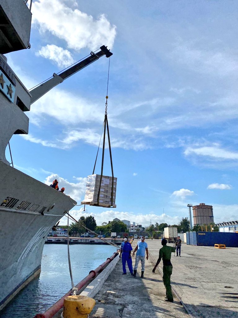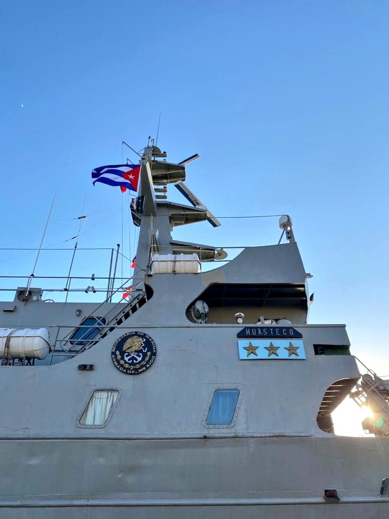 El “Huasteco” fue recibido por autoridades militares y representantes del Ministerio de Cultura y del Instituto Cubano del Libro, quienes dieron la bienvenida a la tripulación del buque, a cargo del transporte de los miles de libros que estarán disponibles para las y los lectores cubanos.