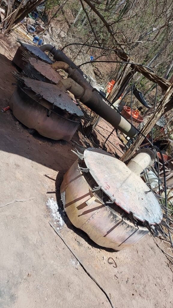 – 6 tinajas con capacidad de 500 Lts con residuos desconocidos.