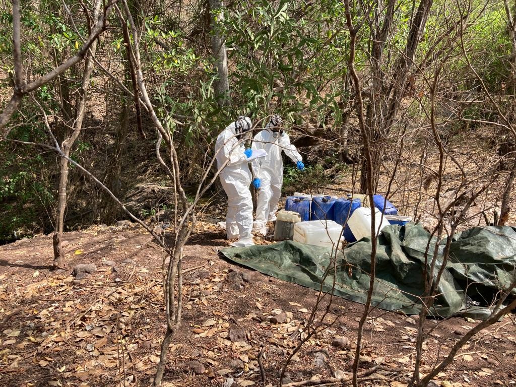 Al arribar a la zona indicada, el personal militar estableció perímetros de seguridad, confirmando la información y procediendo a la inhabilitación de 7 laboratorios clandestinos en donde se aseguró lo siguiente: