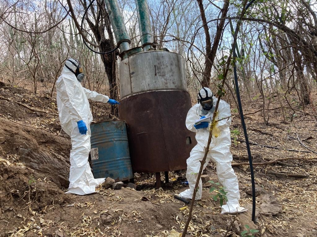 17 de junio de 2022, se localizó 1 laboratorio clandestino. Laboratorio No. 7, a inmediaciones de la ranchería Las Palmas, del municipio de Cosalá, Sin.