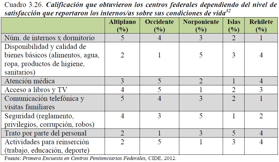 Además de las recomendaciones hachas por la CNDH, en diciembre del año pasado se presentaron los resultados de la primera encuesta realizada en los centros federales de readaptación social, realizada por el CIDE, a encargo de la SSP federal.