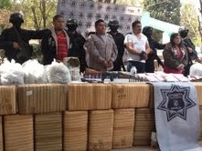 Los detenidos. Foto: Estado MayorMéxico, 17 de marzo.- Al atender una denuncia anónima elementos del Grupo de Reacción Operativa del Municipio de Saltillo (GROMS), de la Policía Preventiva Municipal, lograron el aseguramiento de más de 400 kilogramos de hierba verde y seca con las características de la marihuana y más de 4 kilogramos de cocaína.