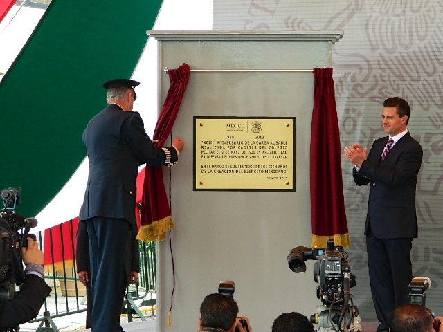 Acompañado por los Secretarios de la Defensa Nacional y Marina-Armada de México, el General Salvador Cienfuegos y el Almirante Vidal Francisco Soberón Sanz respectivamente, el Procurador General de la República, Jesús Murillo Karam, el Gobernador de Tlaxcala, Mariano González Zarur, el Secretario de Comunicaciones y Transportes, Gerardo Ruiz Esparza y varios integrantes del Alto Mando Militar, así como por representantes del poder legislativo y judicial del estado de Tlaxcala, el Comandante Supremo de las Fuerzas Armadas destacó en todo momento la valentía manifestada por los cadetes del Heroico Colegio Militar hace 93 años como fundamento del México democrático de hoy en día y como muestra de los valores intrínsecos en todos los habitantes de este país.