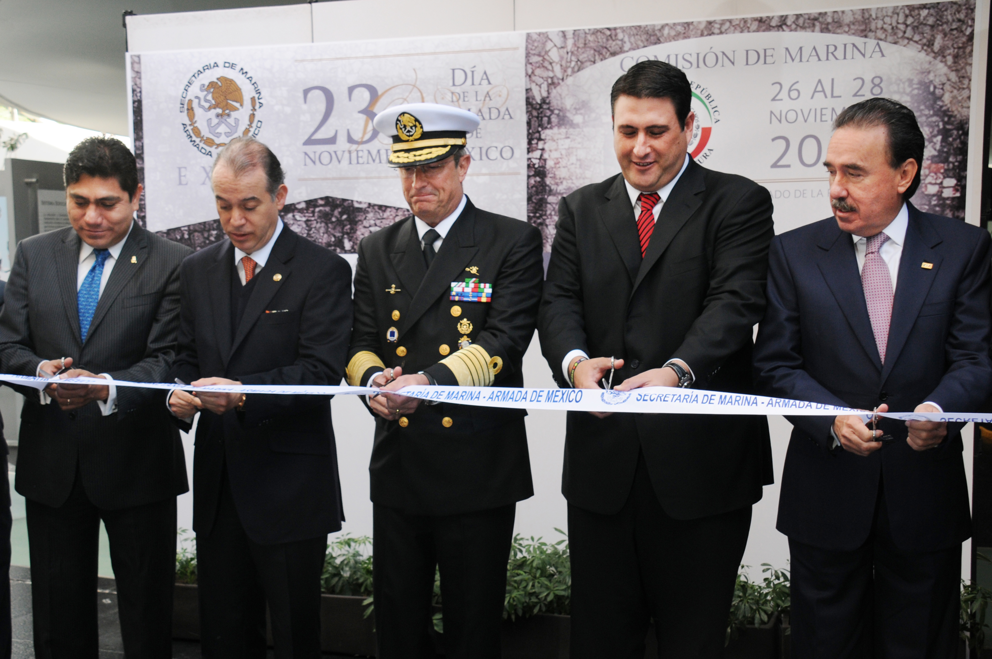 México, 27 de noviembre.- El Almirante Vidal Francisco Soberón Sanz, Secretario de Marina, y los Senadores Raúl Cervantes Andrade y Ricardo Barroso Agramont, Presidente del Senado de la República y Presidente de la Comisión de Marina, respectivamente, inauguraron en el patio central de la Cámara Alta, la exposición “23 de noviembre, Día de la Armada de México”.