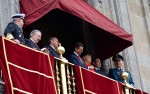 A las once de la mañana, Peña Nieto salió del Palacio Nacional y se dirigió a la Plaza de la Constitución, en donde izó la Bandera monumental y, a bordo de un vehículo militar, pasó revista a tropas.