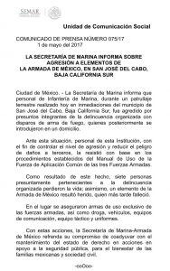 México, 1 de mayo.- Un enfrentamiento sucedido esta madrugada en San José del Cabo, Baja California Sur, deja un saldo de al menos un marino muerto según información confirmada por SEMAR.