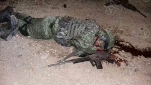 No solo eso; los atacantes también iban uniformados con trajes de campaña, botas, chalecos tácticos y chalecos antibala con la leyenda EJERCITO MEXICANO.