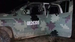 Una de las camionetas Cheyenne de los atacantes llevaba el número 0826305, indicativo que supuestamente la identificaba como un vehículo del 26 veintiséis Batallón de Infantería, el cual tiene su sede en el Campo Militar Número Uno, en la Ciudad de México.
