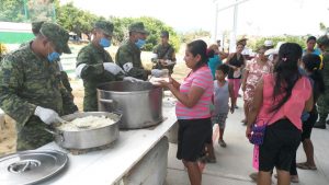 De igual forma los militares establecieron un refugio temporal para más de 40 personas, empleando 10 tiendas de campaña, una célula de intendencia para operar servicios de alimentación así como servicio de atención médica, proporcionándose hasta el momento 388 servicios de alimentación y 34 consultas médicas.