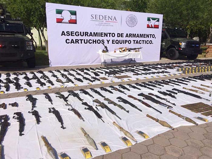 “Como producto del seguimiento de información relacionada con el tráfico de armas se recibió una denuncia ciudadana. La reacción eficiente de elementos militares de la Secretaría de la Defensa Nacional y la cooperación decidida de otras autoridades, hicieron posible el aseguramiento de armas, municiones y equipo táctico utilizado por delincuentes, asimismo, permitió liberar a una familia que vivía secuestrada”.