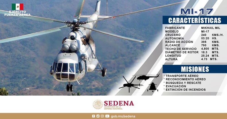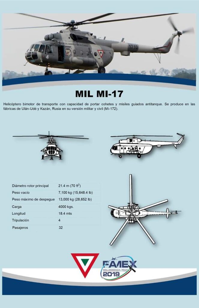 Ciudad de México/08 octubre.- Ante la escasez de recursos para ampliar la flota aérea militar, la Secretaría de la Defensa Nacional (SEDENA) continúa con la dinámica de darle mantenimiento intenso a sus helicopteros Mi-17, el material más numeroso en la Fuerza Aérea Mexicana (FAM) con 19 aparatos, de los cuales ninguno opera en estos momentos debido al desgaste que han tenido.