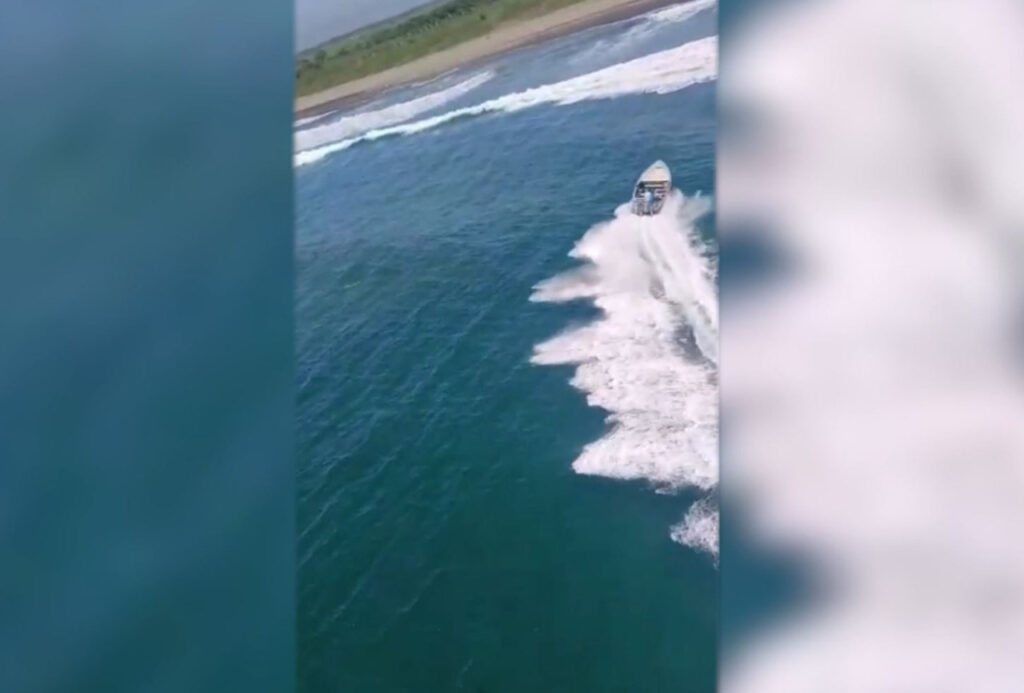 Un helicóptero AS 565 Panther encabezó la persecución de la lancha a baja altura, por lo que la embarcación recaló intempestivamente sobre la playa. Sus ocupantes huyeron mientras la Marina desplegaba un operativo para asegurar la droga y detenerlos.