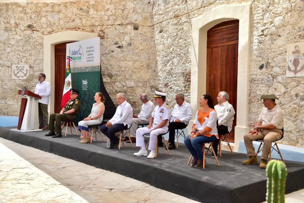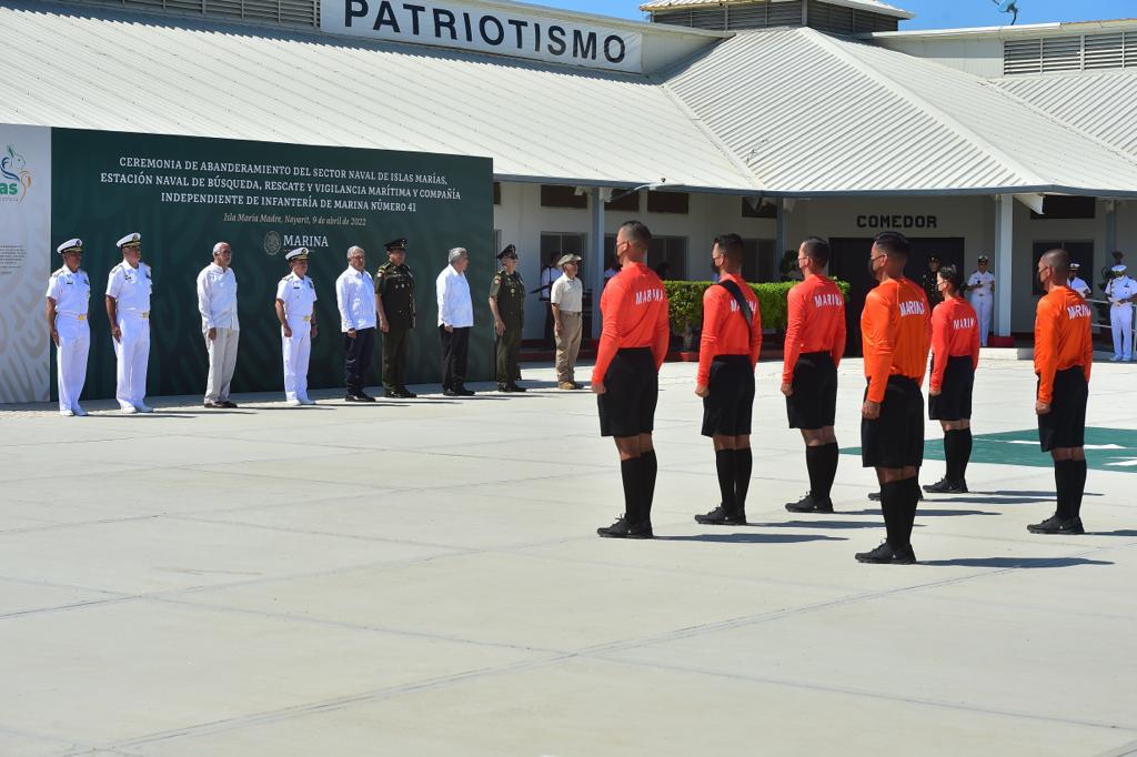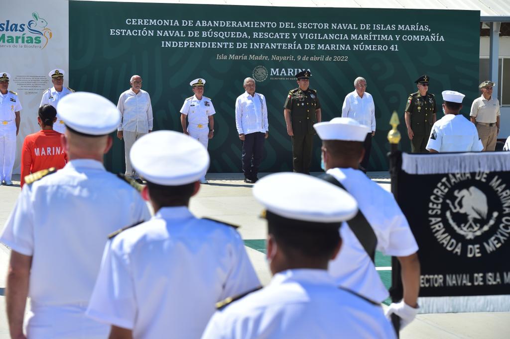 Durante la visita del presidente López obrador, se hizo el abanderamiento de del Sector Naval de Islas Marías (NAVISMAR), de la Compañía Independiente de Infantería de Marina (CIIM) Núm.41, así como de la Estación Naval de Búsqueda, Rescate y Vigilancia Marítima (ENSAR) Islas Marías; unidades de MARINA representadas por el personal naval que se encuentra comisionado para cumplir con la misión de esta Institución y hacer posible, mediante un trabajo conjunto, este proyecto para conservar la biósfera de esa zona del territorio mexicano, indicó la secretaría.