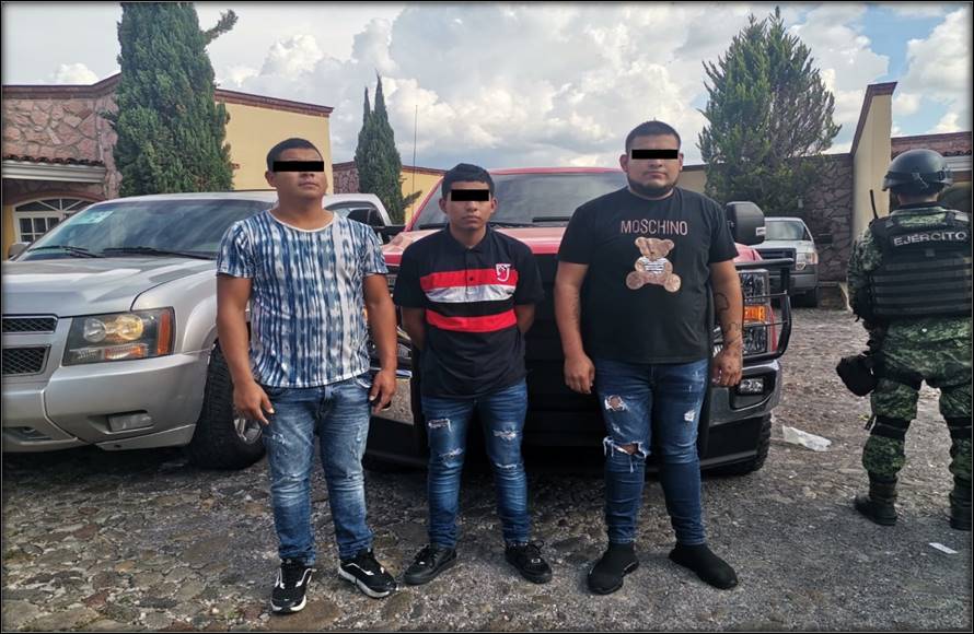 El personal integrante del escalón de seguridad logró la detención de 3 personas que portaban armas de fuego de uso exclusivo del Ejército y Fuerza Aérea Mexicanos, sin efectuar disparo alguno, asegurándoles: