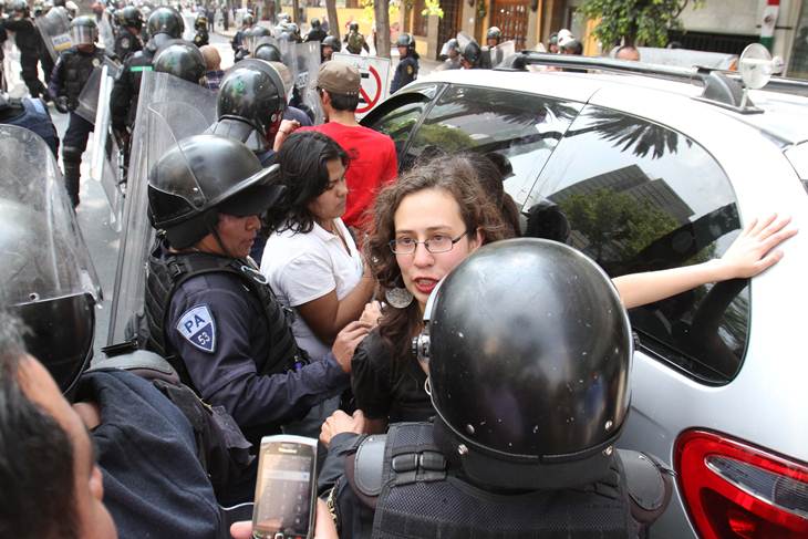 México, 2 de diciembre (El Universal).- Varios grupos de personas embozadas, con máscaras antigas y paliacates intentaban derribar las barricadas colocadas desde hace una semana sobre la avenida Eduardo Molina, como parte del operativo de seguridad de la ceremonia de traspaso de poder y que se mezclaron con manifestantes que de manera pacífica gritaban consignas…nota completa.