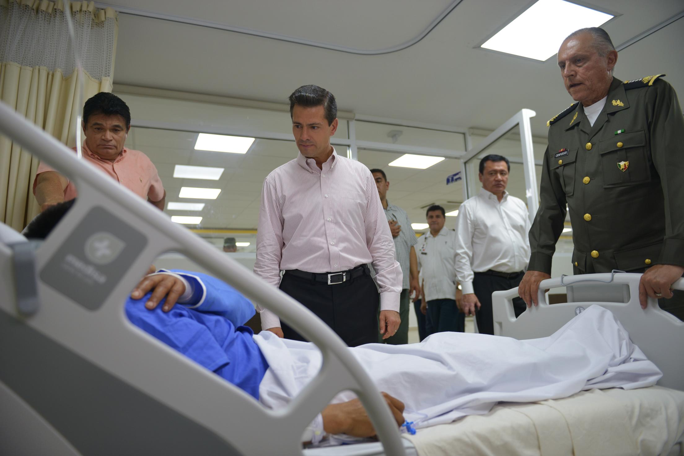 El Primer Mandatario giró indicaciones al General Salvador Cienfuegos Zepeda, Secretario de la Defensa Nacional, para que a los soldados heridos y a sus familiares se les preste toda la atención que requieran.