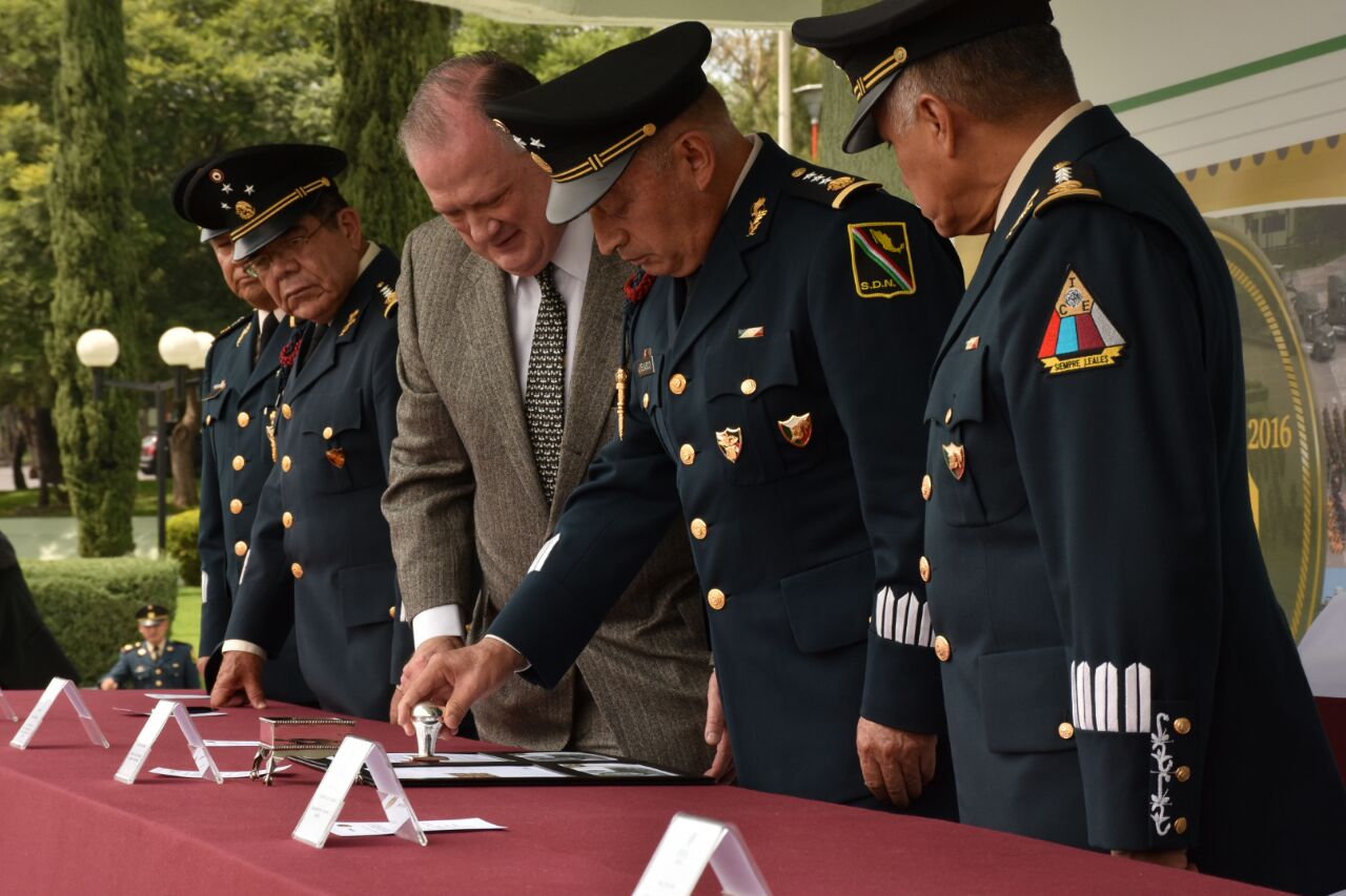 México, 13 de octubre.- La Secretaría de la Defensa Nacional llevó a cabo la ceremonia de Cancelación de la Emisión del Timbre Postal Conmemorativo a los “50 años de la Aplicación del Plan DN-III-E”, en la explanada “Damián Carmona” del Campo Militar No. 1-A, la cual fue presidida por el General de División Diplomado de Estado Mayor Daniel Velazco Ramírez, Inspector y Contralor General del Ejército y Fuerza Aérea, acompañados de Joaquín Blanes Casas, Director Corporativo de Asuntos Jurídicos y Seguridad Postal.