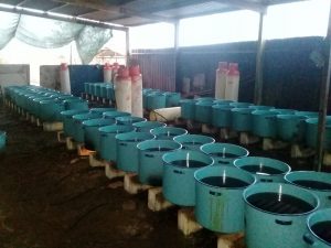 12 tinas con capacidad de 400 litros cada una llenas de agua, dentro de las cuales se hallaban sumergidos 12 tambos de 100 litros.