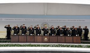 México, 4 de julio.- En una ceremonia solemne realizada en las instalaciones de la Secretaría de Marina, 14 elementos de la Armada de México de la categoría de Almirantes pasaron a situación de retiro por edad límite, tras servir a la nación por más de cuatro décadas a México.