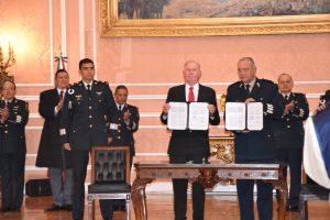 México, 6 de septiembre.- El General Salvador Cienfuegos Zepeda, Secretario de la Defensa Nacional y el Dr. Francisco Javier Mendieta Jiménez, Director General de la Agencia Espacial Mexicana llevaron a cabo la firma del “Convenio General de Colaboración entre la Secretaría de la Defensa Nacional y la Agencia Espacial Mexicana”, el cual estará vigente hasta el 30 de noviembre del 2018.