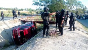 La versión oficial refirió que los agentes de la Fuerza Tamaulipas, circulaban a bordo de una camioneta Dodge Ram, color blanco, cuatro puertas y perseguían a varios hombres armados por la carretera a San Fernando, a la altura del ejido Águila Azteca. De este lugar se inició una persecución y kilómetros adelante los delincuentes tiraron sobre el asfalto ponchallantas y dispararon en uno de los neumáticos de la camioneta de los policías.