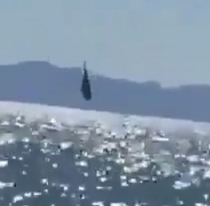 Otro video tomado desde una distancia mayor, permite ver al aparato que comienza a girar, clava la nariz y luego se va a pique en el mar, a unos metros de dos o tres lanchas. Los pescadores que tomaron el video gritan ¡mira, se cayó, se cayó güey! y enfilan hacia el lugar del accidente.