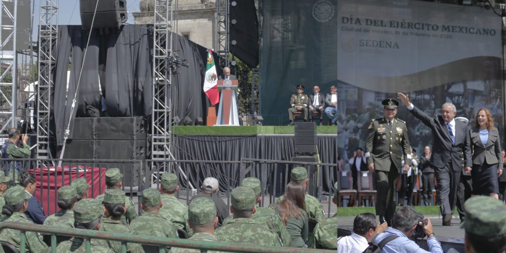 En la plancha del Zócalo de la Ciudad de México, el presidente López Obrador encabezó el acto de reconocimiento al Ejército Mexicano en su día, con un festival musical en el que, minutos antes del mensaje presidencial, la Sonora Santanera y la Sonora Dinamita hicieron bailar a los más de 10 mil soldados reunidos frente a Palacio Nacional.