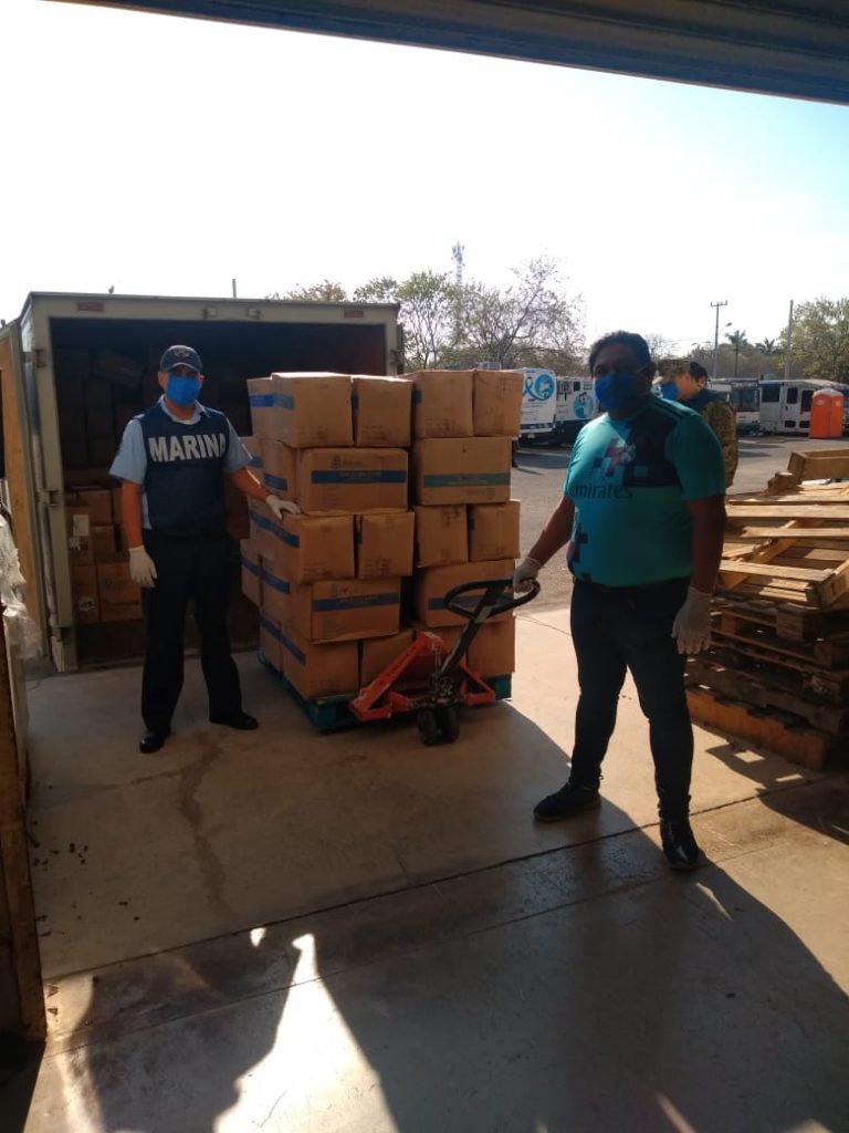 Ciudad de México, 28 de abril.- La Secretaría de Marina-Armada de México (SEMAR) dio a conocer las acciones que lleva a cabo para apoyar las medidas de contención y combate al COVID-19, distribuyendo equipo médico de protección primaria que ha sido entregado en distribuido en los diferentes almacenes del Instituto de Salud para el Bienestar (INSABI) ubicados en los estados de Jalisco, Colima, Nayarit, Sinaloa, Sonora, Baja California y Baja California Sur, en el Pacífico, así como Puebla, Veracruz, Tabasco, Campeche, Yucatán y Quintana Roo, en el Golfo de México.