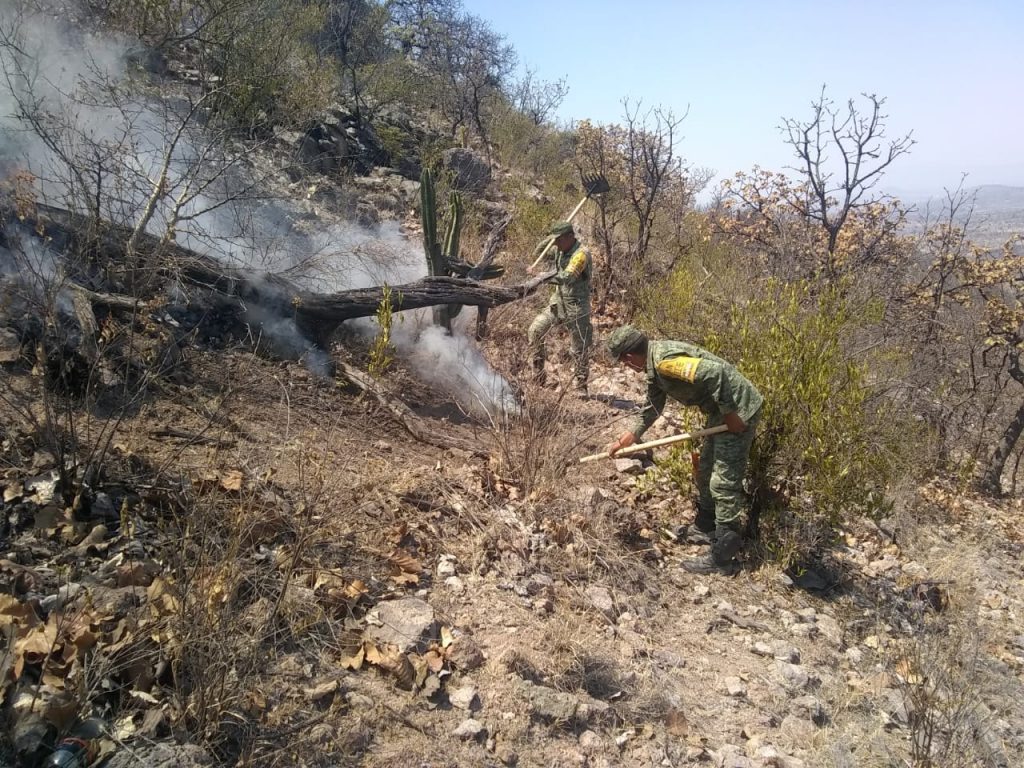 Este Instituto Armado desplegó un total de 106 efectivos militares en citados estados, donde realizaron labores de combate a incendios, empleando herramientas de mano para la elaboración de brechas cortafuego, alcanzando el 100 por ciento de sofocación.