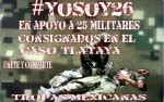 México, 2 de octubre.- Mediante el denominativo #YoSoy26, militares en activo y en retiro emitieron una convocatoria por Facebook y Twitter para la realización de una marcha el próximo 11 de octubre a las 11 de la mañana desde el Zócalo capitalino hasta la residencia oficial de Los Pinos en apoyo a los soldados detenidos por…
